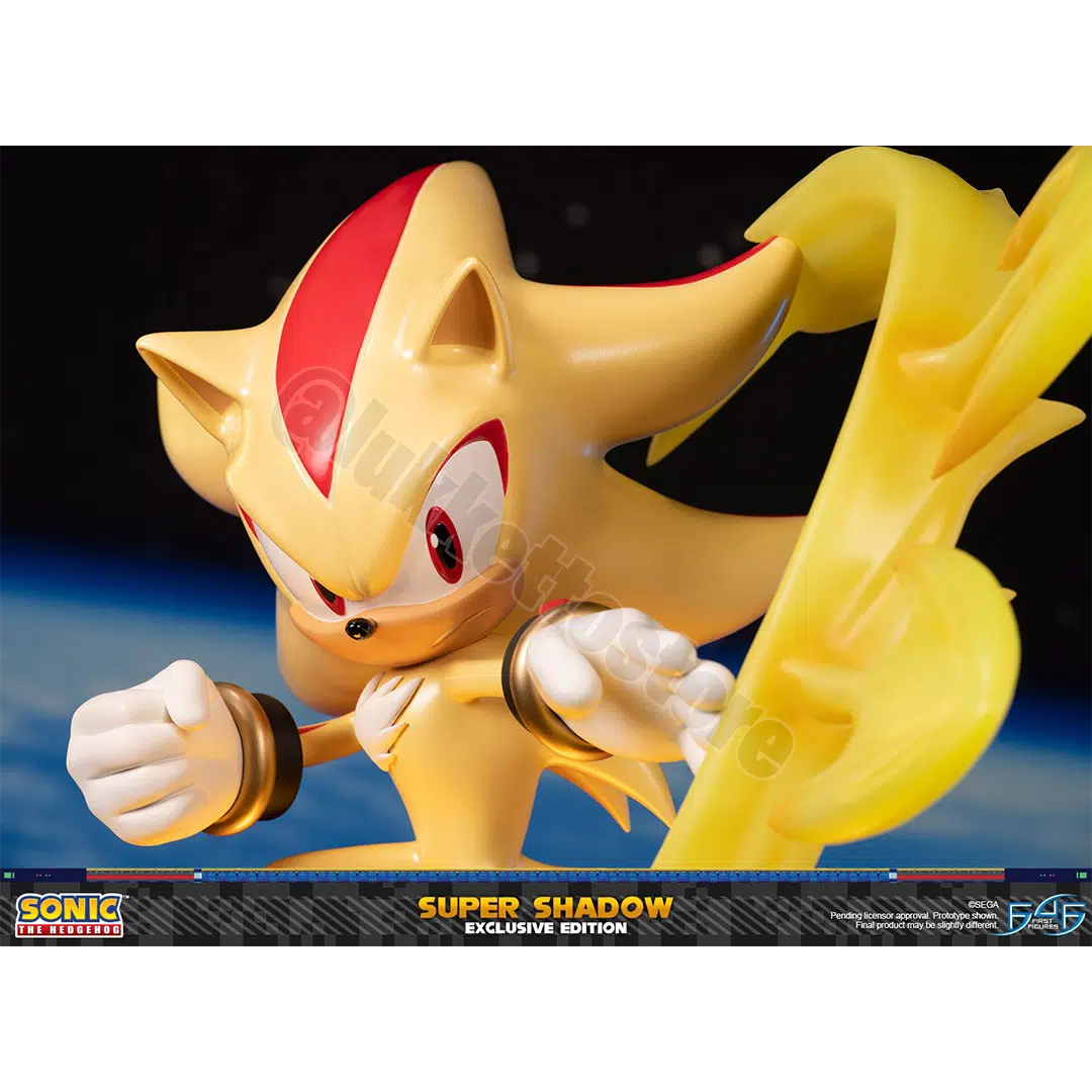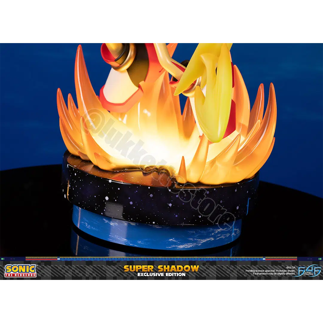 Il concetto di questa statua è ispirato alla battaglia del boss finale in Sonic Adventure 2, quando Shadow the Hedgehog e Sonic the Hedgehog si alleano per affrontare Finalhazard. È durante questo incontro che vediamo per la prima volta Shadow the Hedgehog nel suo Super State. Sfruttando il potere di tutti e sette i Chaos Emerald, Super Shadow può ora raggiungere il suo massimo potenziale e utilizzare tutta la potenza delle sue abilità come la Chaos Spear!